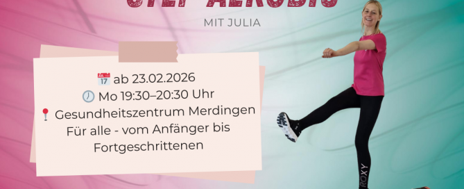 Power, Spaß und Bewegung: Unsere Step-Aerobik-Kurse mit Julia starten ab Montag dem 23.2.2026 für unsere Mitglieder.
